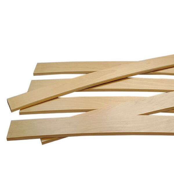 Ламели для кровати размером 1500 х 53 х 8 мм используются для создания основания (каркаса) кровати и наделяют его ортопедическими свойствами. Изготавливаются из 100% экологичного берёзового шпона и не имеет никакого запаха. Благодаря высокому качеству обработки изделий, продукт имеет гладкую поверхность и не повреждает матрас. Для производства основания из ламелей для кровати длиной 2 метра необходимо порядка 14-17 ламелей. Количество ламелей напрямую зависит от планируемой нагрузке на спальное место. Замена и установка ламелей не занимает много времени и может производится в домашних условиях. Реализуемые нами ламели полностью соответствуют ГОСТу 21178-2006.