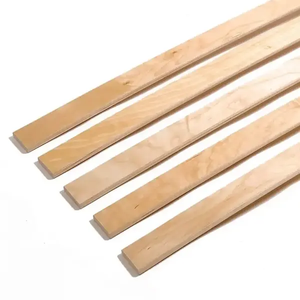 Ламели для кровати размером 900 х 63 х 8 мм используются для создания основания (каркаса) кровати и наделяют его ортопедическими свойствами. Изготавливаются из 100% экологичного берёзового шпона и не имеет никакого запаха. Благодаря высокому качеству обработки изделий, продукт имеет гладкую поверхность и не повреждает матрас. Для производства основания из ламелей для кровати длиной 2 метра необходимо порядка 14-17 ламелей. Количество ламелей напрямую зависит от планируемой нагрузке на спальное место. Замена и установка ламелей не занимает много времени и может производится в домашних условиях. Реализуемые нами ламели полностью соответствуют ГОСТу 21178-2006.